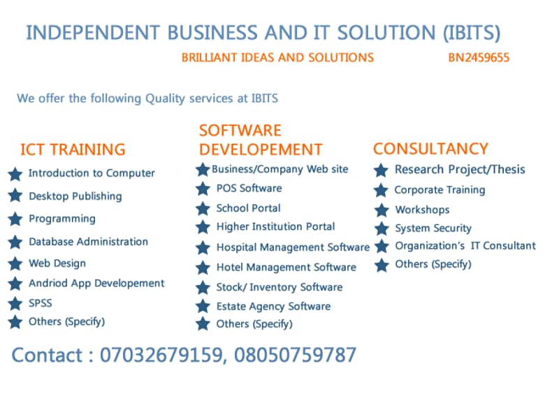 We accepts contracts from our clients be it setting up a computer lab for secondary school, an ICT centre for business owners or procurements of hardware deveices and software. we are commpleately reliable